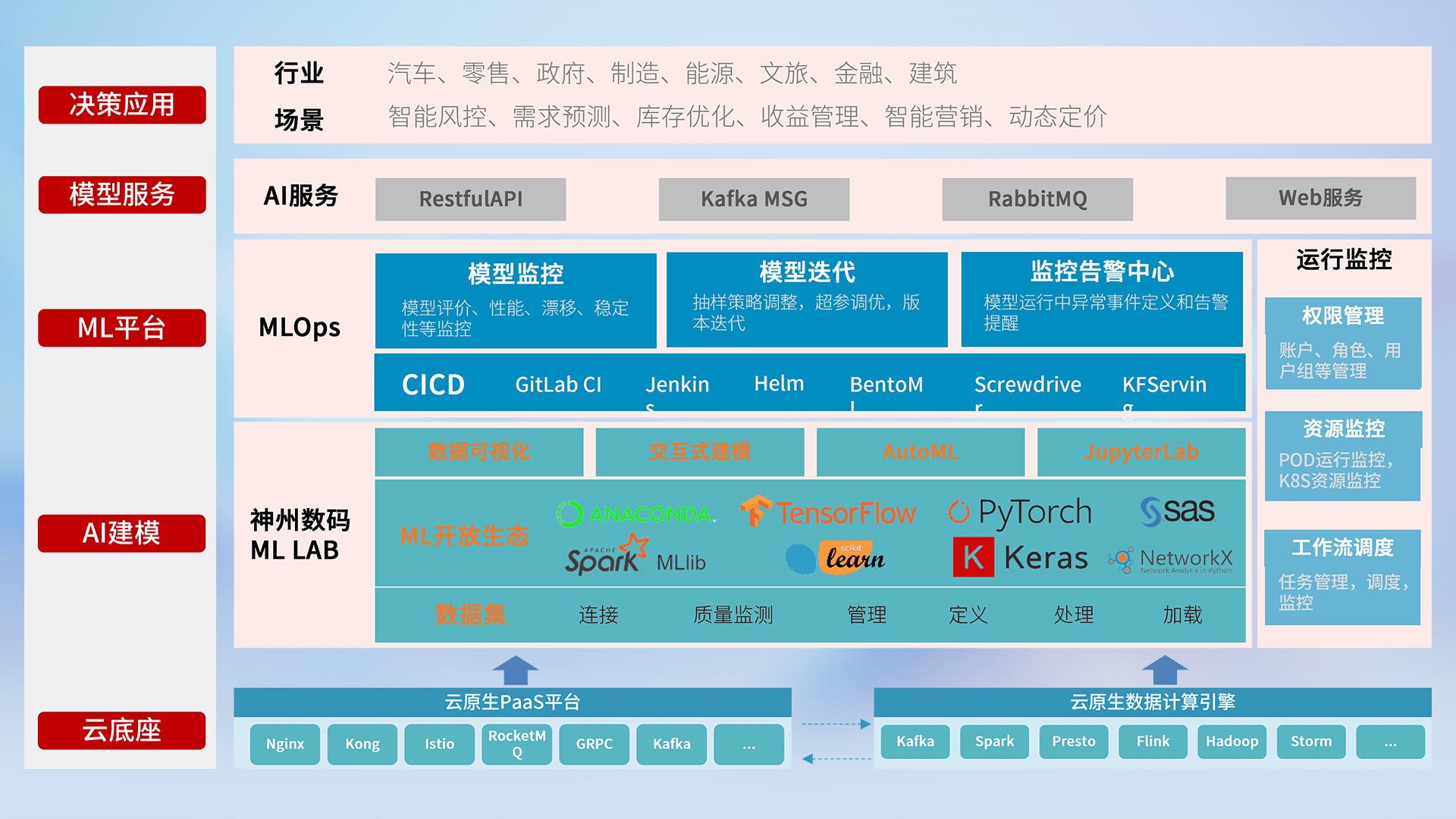 数据+模型双引擎驱动,,面向智能服务场景,,,快速灵活利用AI技术,,支持业务决策,,,,助力企业智能化转型破局。。。